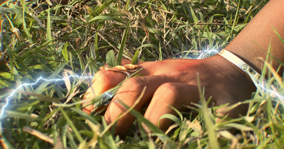 Uncover the mystical and enigmatic with glowing energy and surreal elements. Witness a hand in grass with glowing energy effect and a baby in glowing oval, labeled "Baby Natalie."